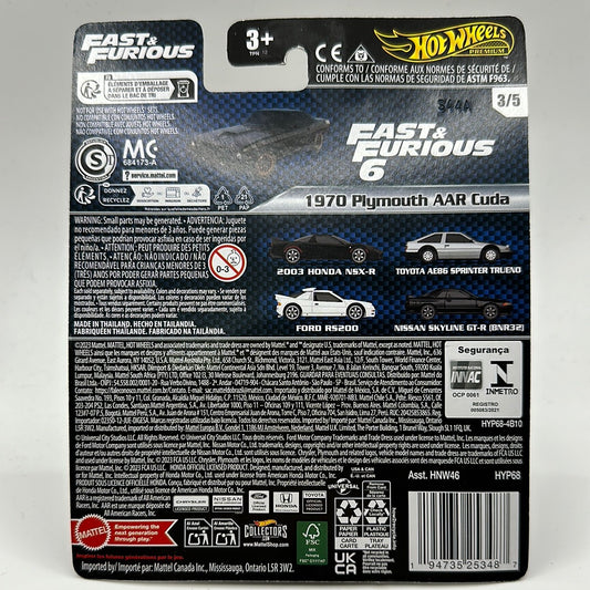 1970 Plymouth AAR Cuda Fast & Furious 6 3/5 Hotwheels Premium 1:64