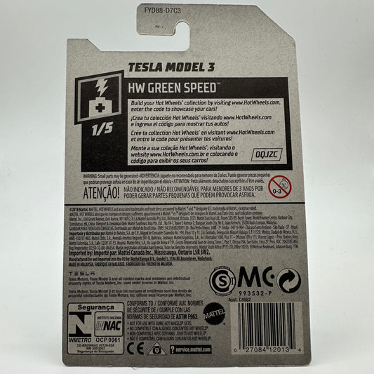 Tesla Model 3 HW Green Speed 1/5 Hotwheels Mainline 174/250