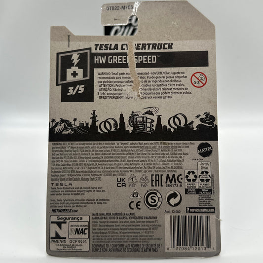 Tesla Cybertruck- HW Green Speed 3/5 Hotwheels Mainline 177/250 *Bad condition card*