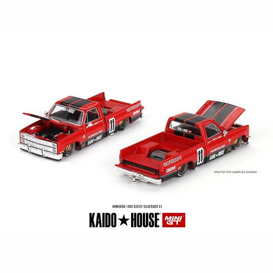 Chevrolet Silverado Kaido V1 Red 066 Kaido House x MiniGT 1:64 Scale